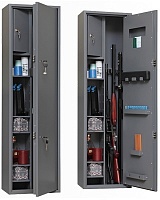 Это лёгкий бюджетный шкаф сейфового типа, рассчитанный на удобное и правильное хранение пяти единиц гладкоствольного оружия, а также для ручного оружия, ножей и боеприпасов. Предназначается для защиты от нежелательного доступа детей, обслуживающего персонала и случайных грабителей, не располагающих специальным набором противосейфовых инструментов. Немаловажным достоинством является крайне умеренная цена, делающая модели шкафов Onix весьма выгодным приобретением независимо от вашего бюджета.